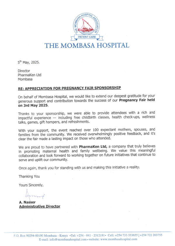 The Mombasa Hospital Pregnancy Fair Sponsorship Appreciation Letter